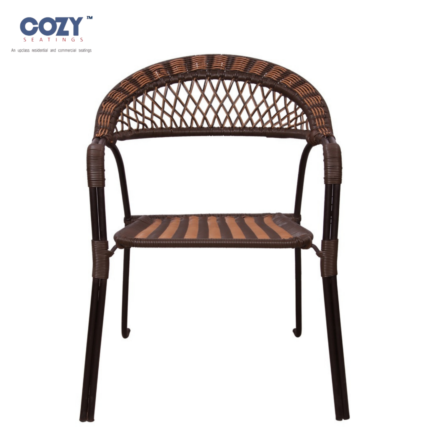 Papasan Synthetic PE Rattan Outdoor Seating Patio Furniture 1 Seater Net Chair- Brown Mustard