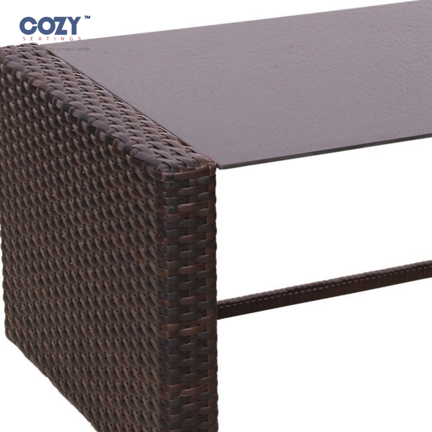 Papasan Synthetic PE Rattan (Wicker) Outdoor Seating Patio Furniture Top Glass Square Table- Brown