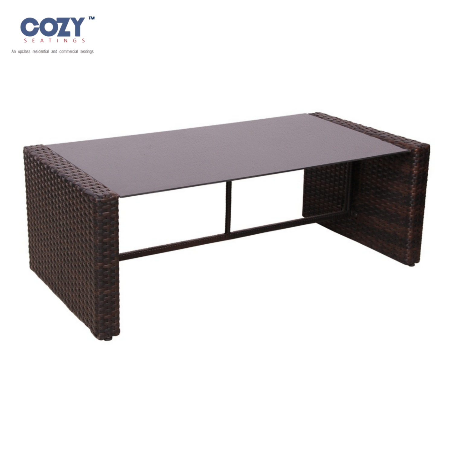 Papasan Synthetic PE Rattan Outdoor Seating Patio Furniture Rectangular Table- Grey Brown