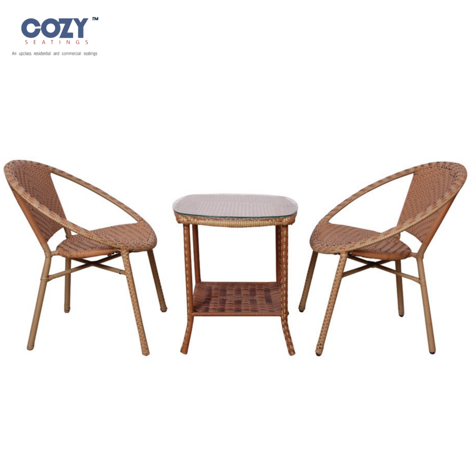 Papasan Synthetic PE Rattan (Wicker) Outdoor Seating Patio Furniture Set of 2- Brown(2+Centre Table)
