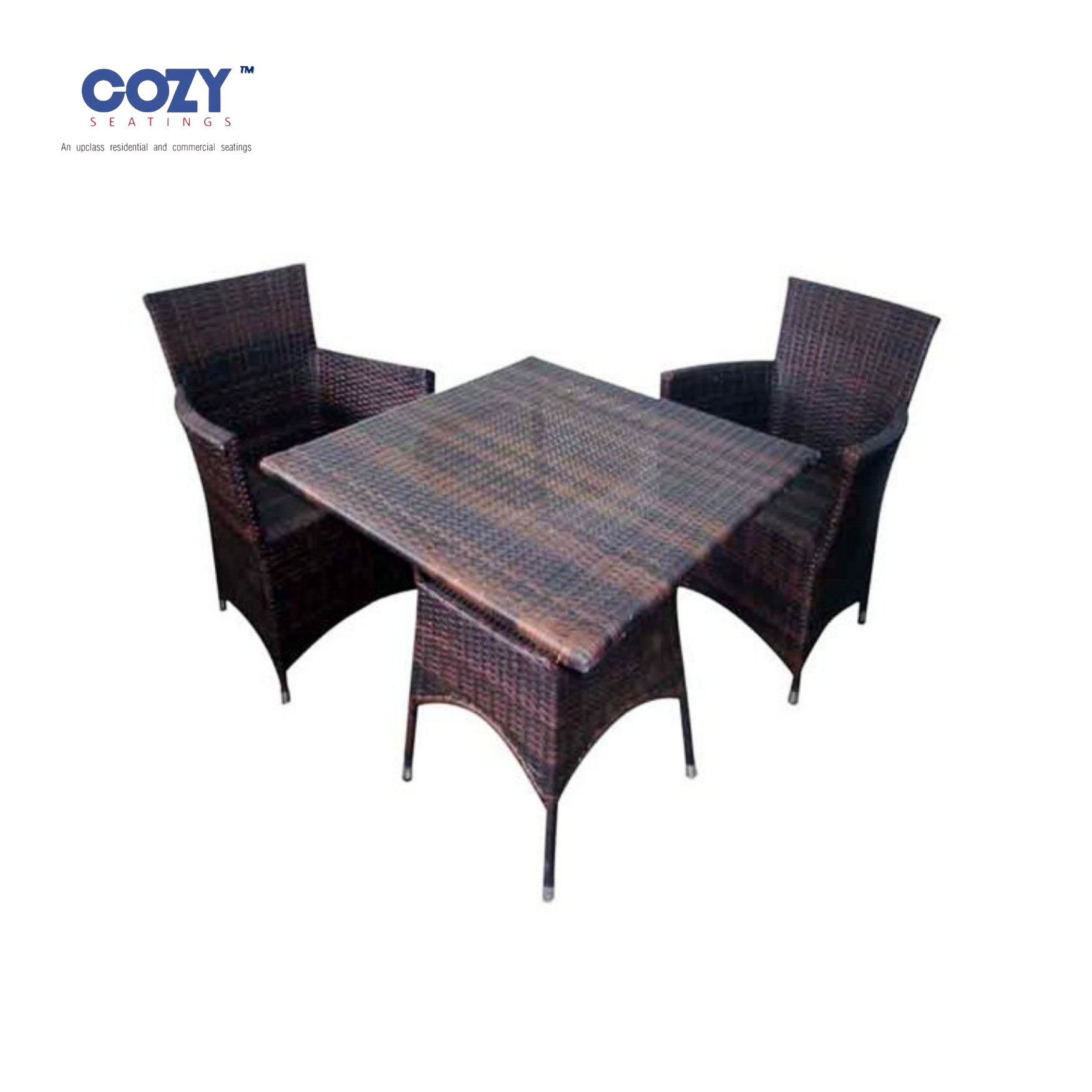 The Cozy Seatings Square Wicker Dining Set is a practical and stylish choice for any outdoor dining area, meeting the standard for “upclass residential and commercial seatings”.