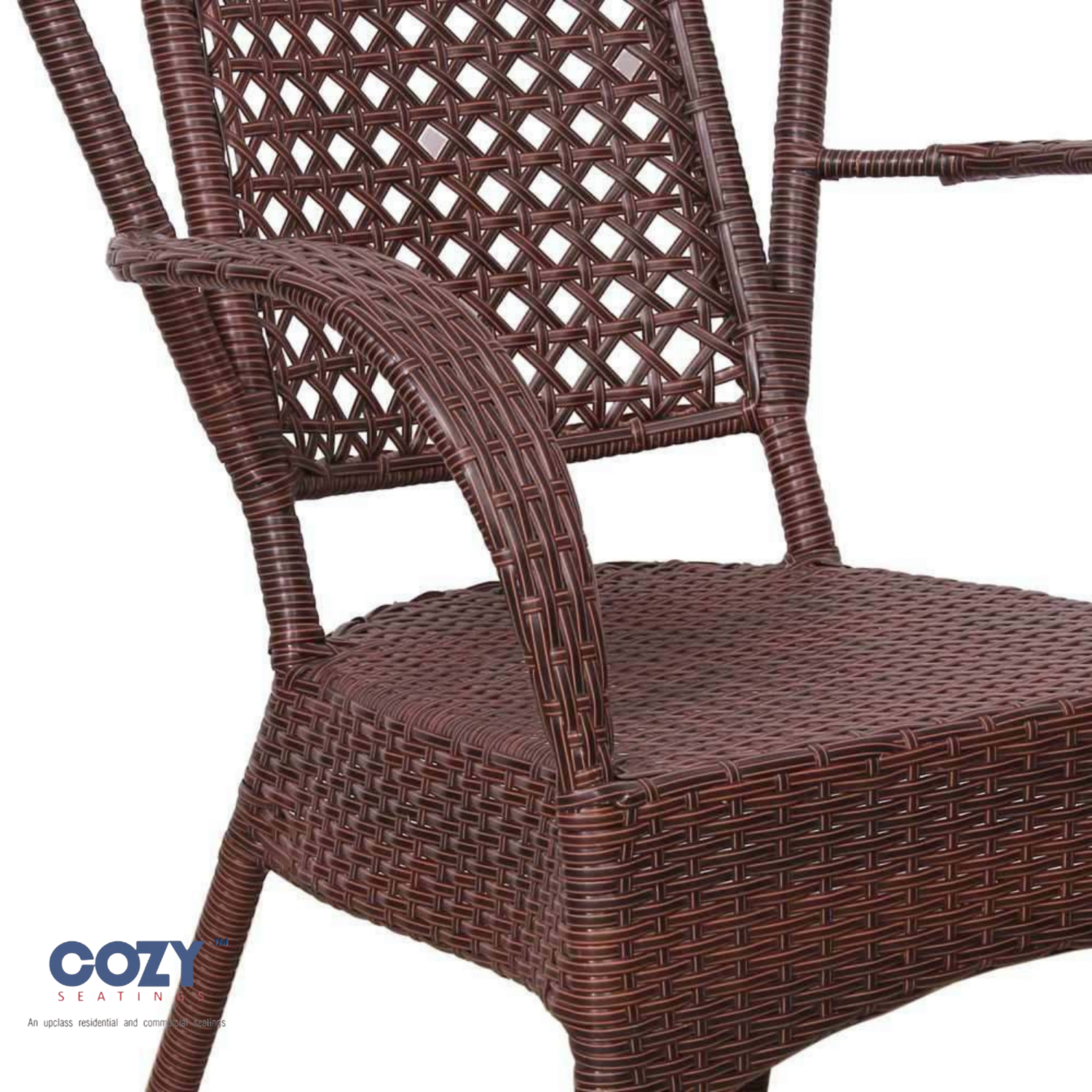 Maximise your outdoor space without sacrificing style with the Cozy Seatings Brown Net Crown Shaped Armchair. This set is an ideal choice for “upclass residential and commercial seatings” that require clever, compact solutions.
