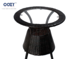 Elegant Tabletop: The centrepiece table boasts a stylish, round glass top for a smooth, easy-to-clean surface, securely resting on a sturdy woven base.