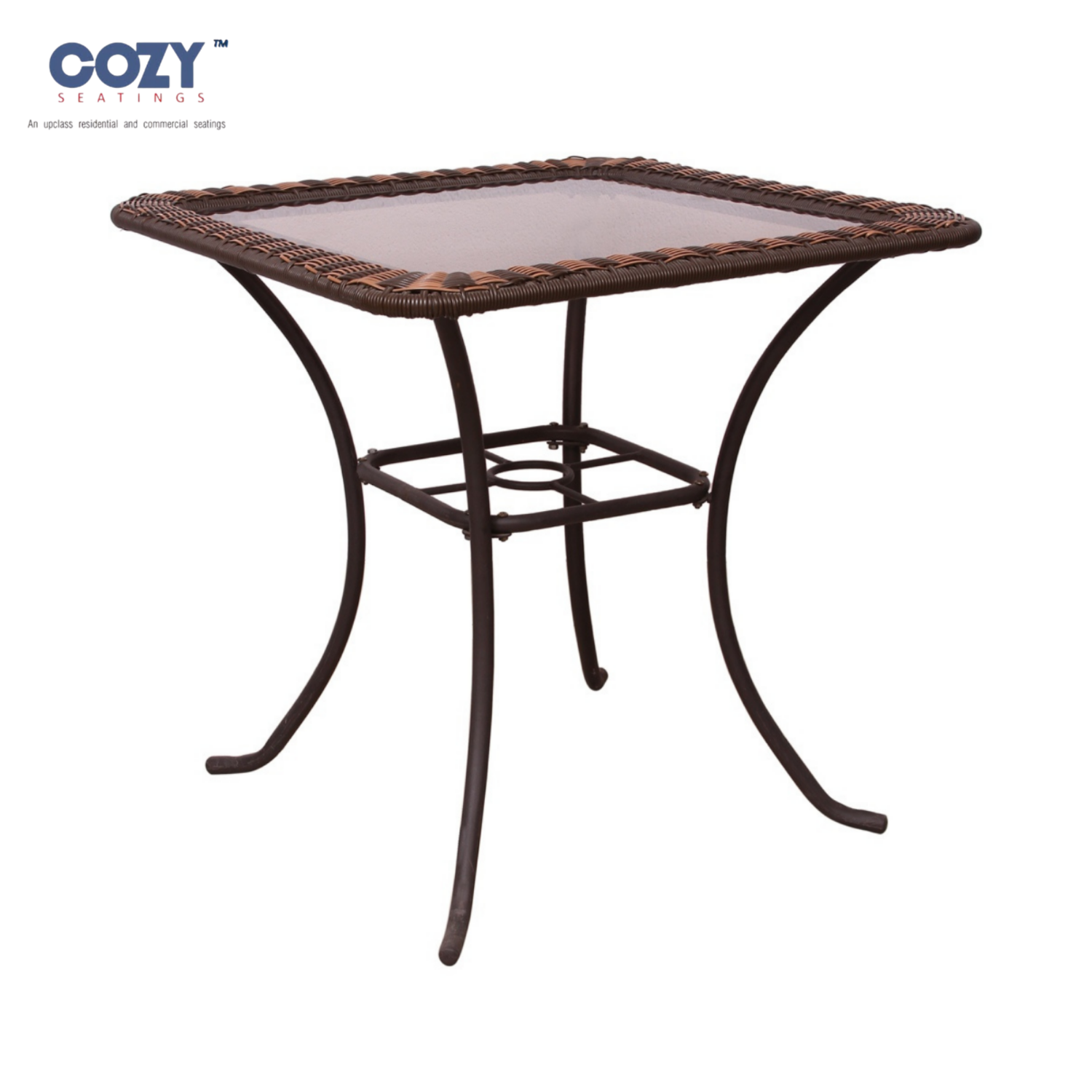 Elevate your indoor or covered commercial lounge space with the Cozy seatings Square Shape Hourglass Top Table. This comfortable and modern set is an excellent choice for “an upclass residential and commercial seating”.