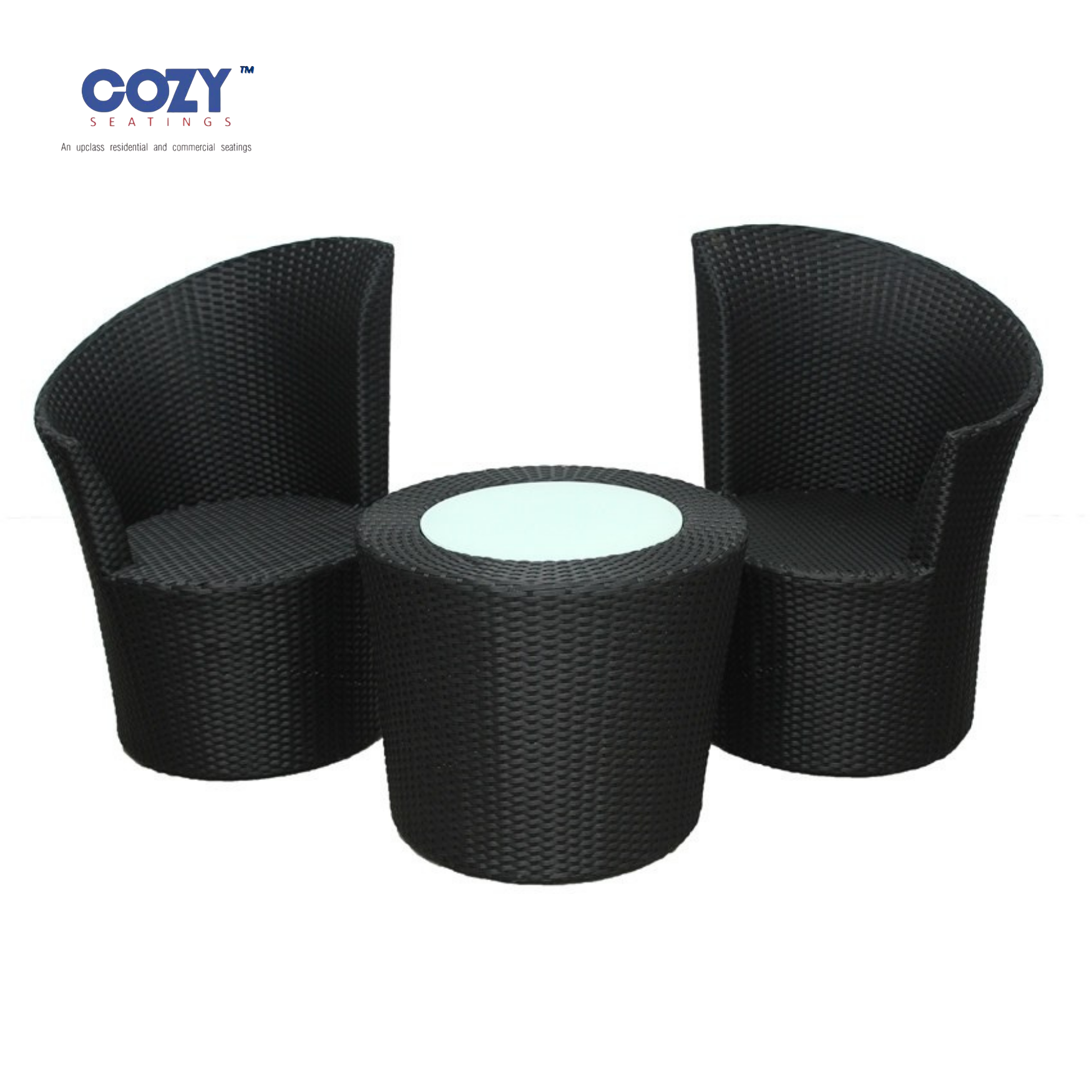 Papasan Synthetic PE Rattan Patio and Balcony Outdoor Seating Set of 2- Black(2+Round Table)