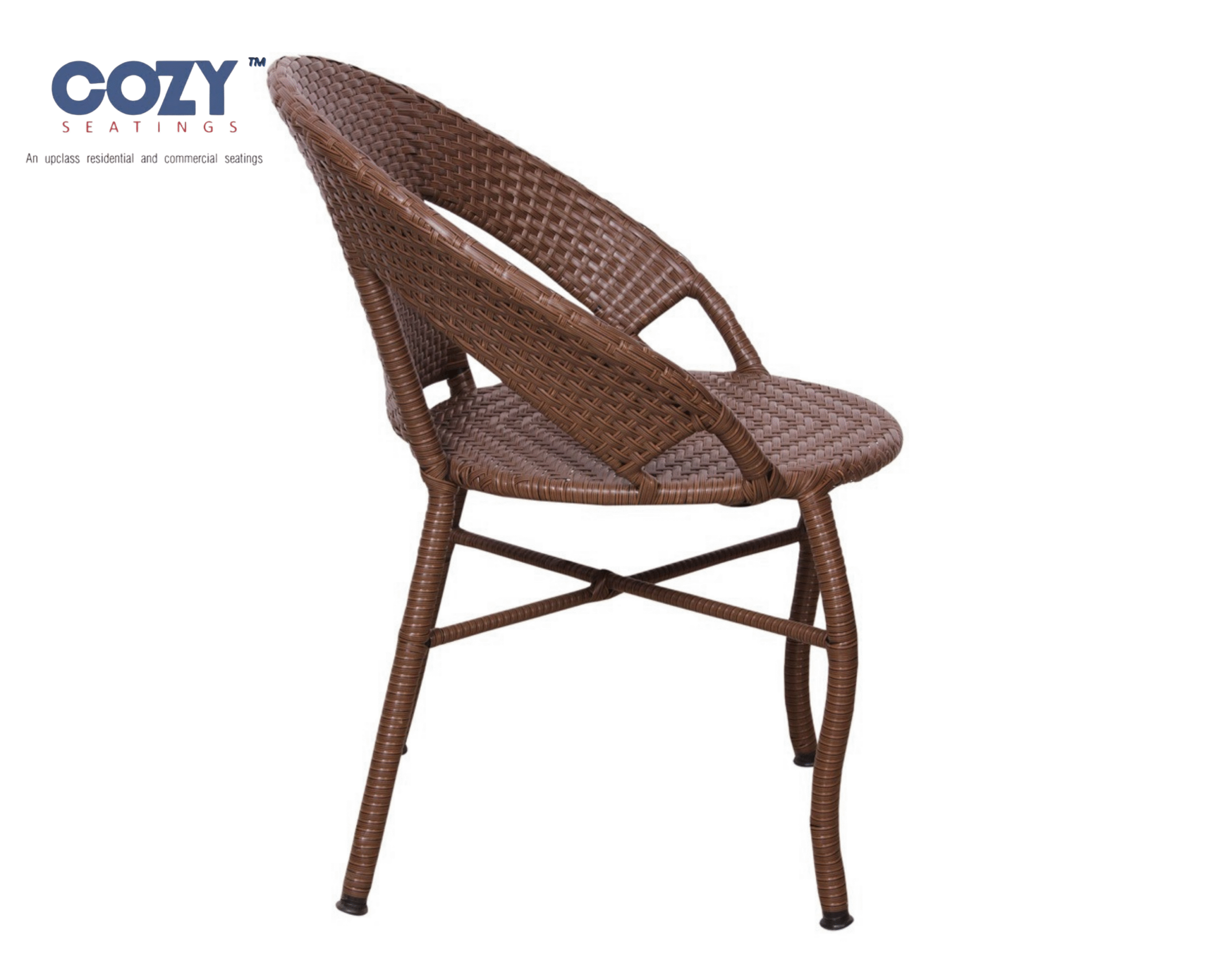 Add a touch of contemporary flair to your outdoor area with the Cozy Seatings Wicker Brown Armchair. Its unique, tapered design makes it a striking accessory that complements any seating arrangement and is suitable for “upclass residential and commercial seatings”.
