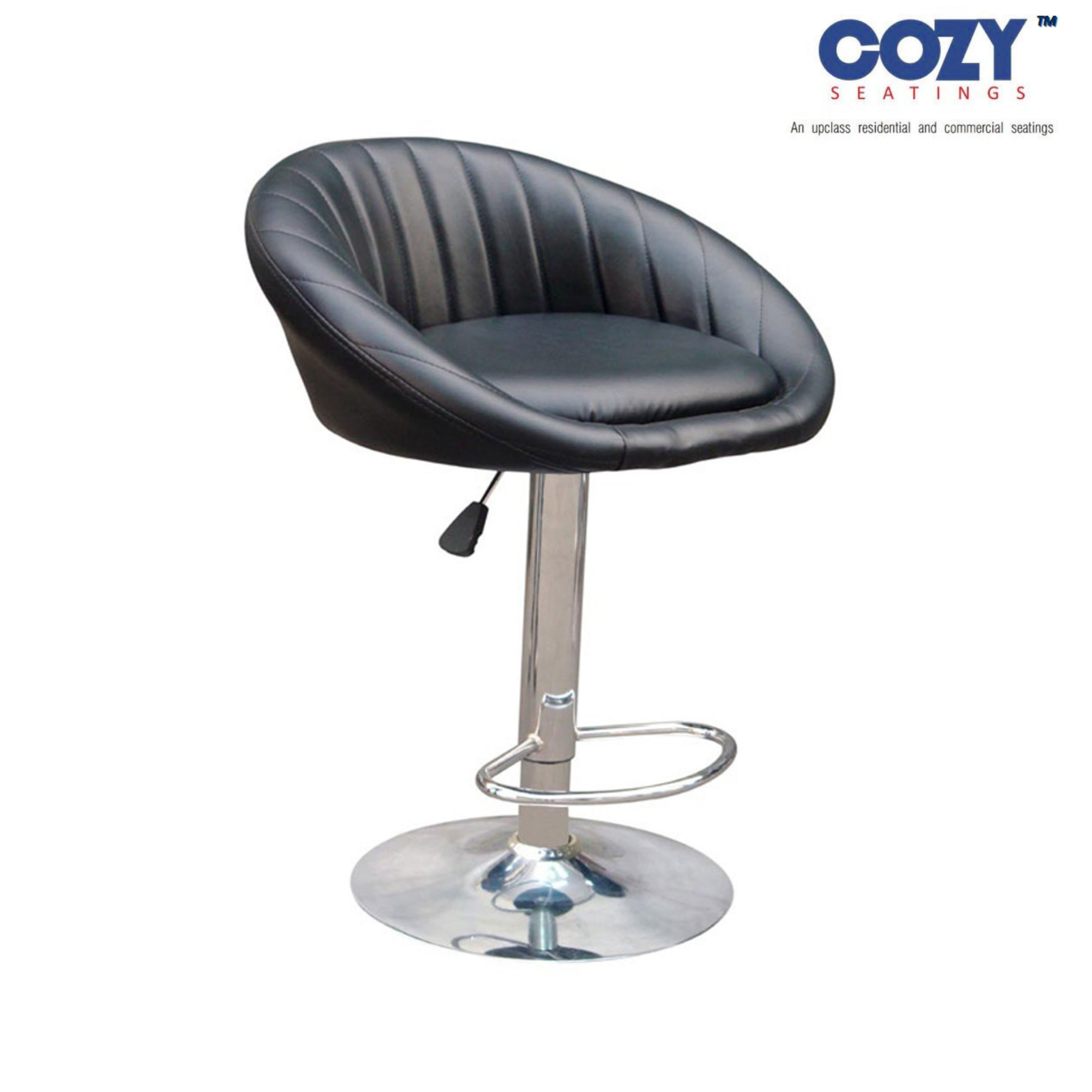 Discover the ultimate in modern seating with this contoured bar stool from the COZY SEATINGS upclass residential and commercial collection. Featuring a deep, bucket-style seat upholstered in rich black faux leather, this stool offers both exceptional style and superior comfort.