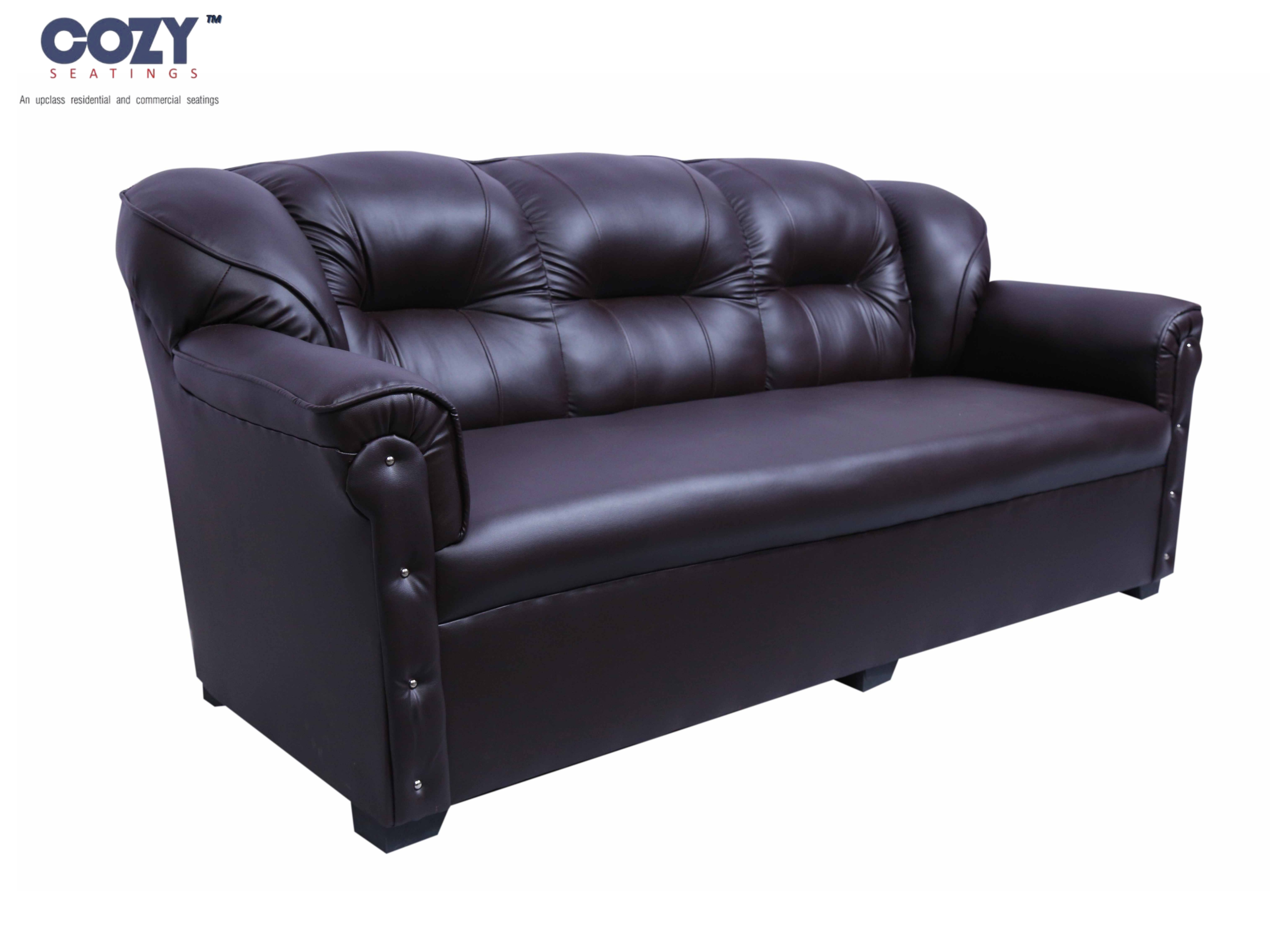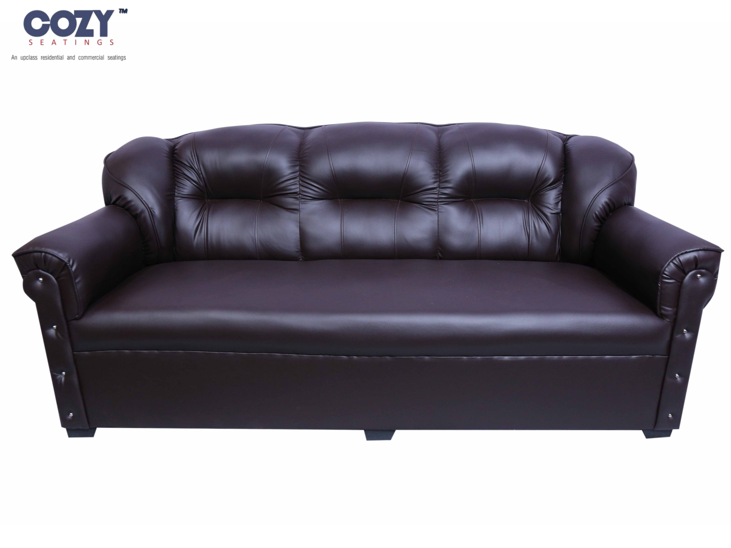 Enhance your living space with the timeless elegance of the Cozy Seatings Classic Brown 3-Seater Sofa. Upholstered in high-quality leatherette, this sofa features a plush tufted backrest and smooth cushioned seating for superior comfort.