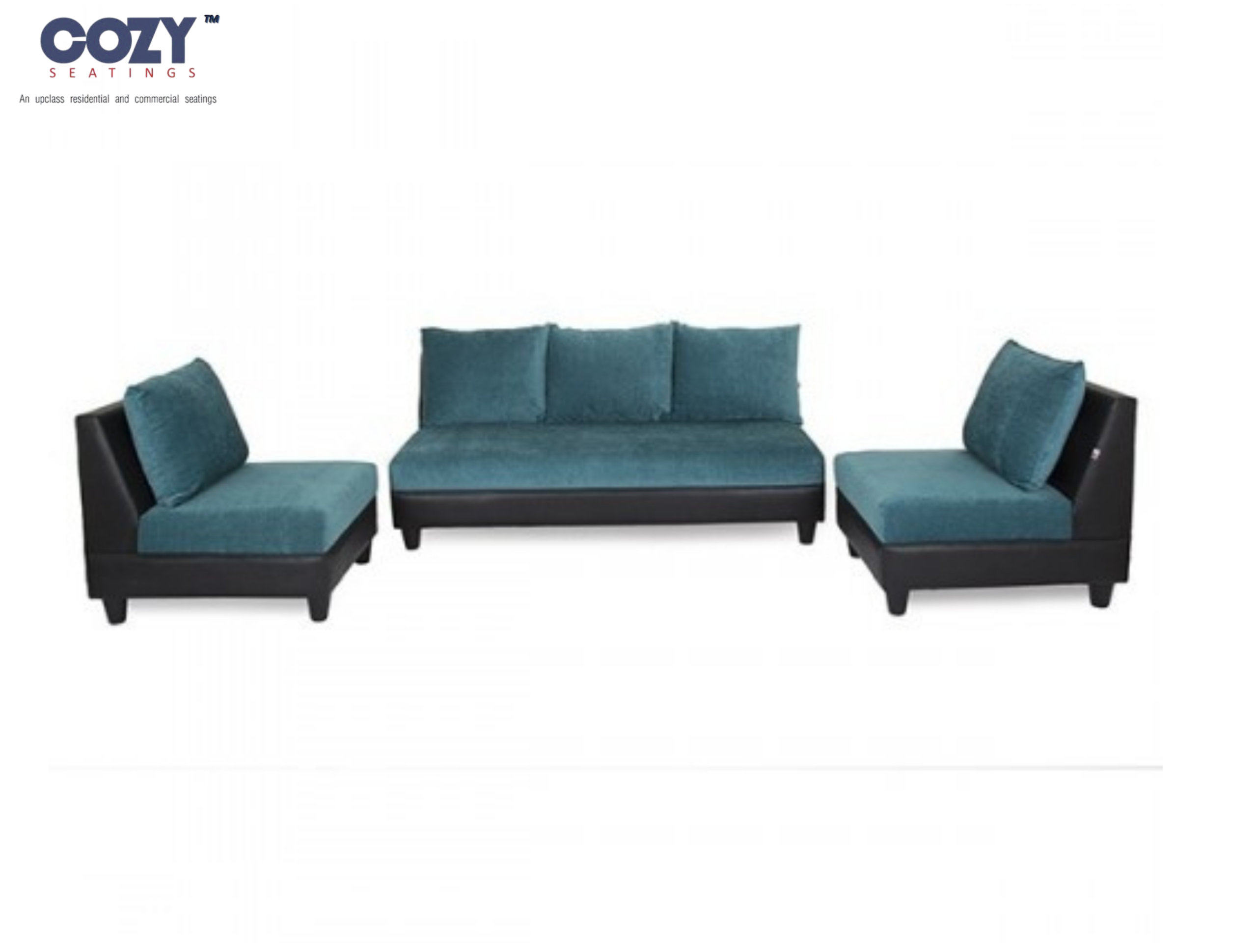 Add a refreshing touch of elegance to your living space with this stylish 3+1+1 sofa set from Cozy Seatings. Upholstered in premium teal blue fabric and complemented by a sleek black base, this sofa set brings a vibrant yet sophisticated look to your interiors. The generously cushioned seats and supportive backrests ensure maximum comfort for everyday use, whether you’re relaxing or hosting guests. Crafted with a strong and durable frame, this set guarantees long-lasting performance. Perfect for living rooms, lounges, and office spaces, it offers a perfect blend of modern design, comfort, and durability.