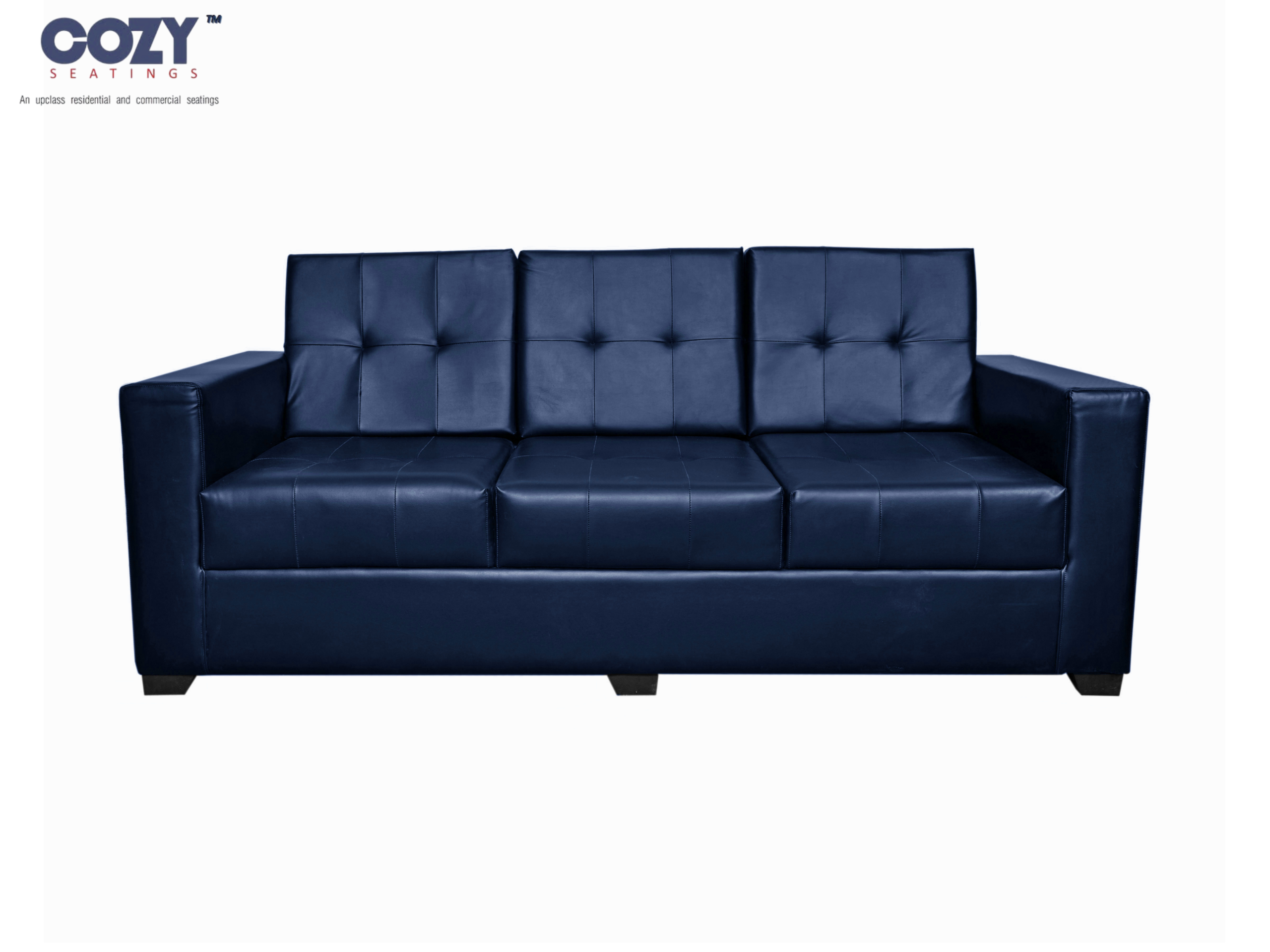 Transform your living space with the elegant Cozy Seatings 3+1+1 Sofa Set in Navy Blue. Upholstered in premium leatherette, this sofa set features a sleek square-tufted design that delivers a modern and sophisticated appeal.