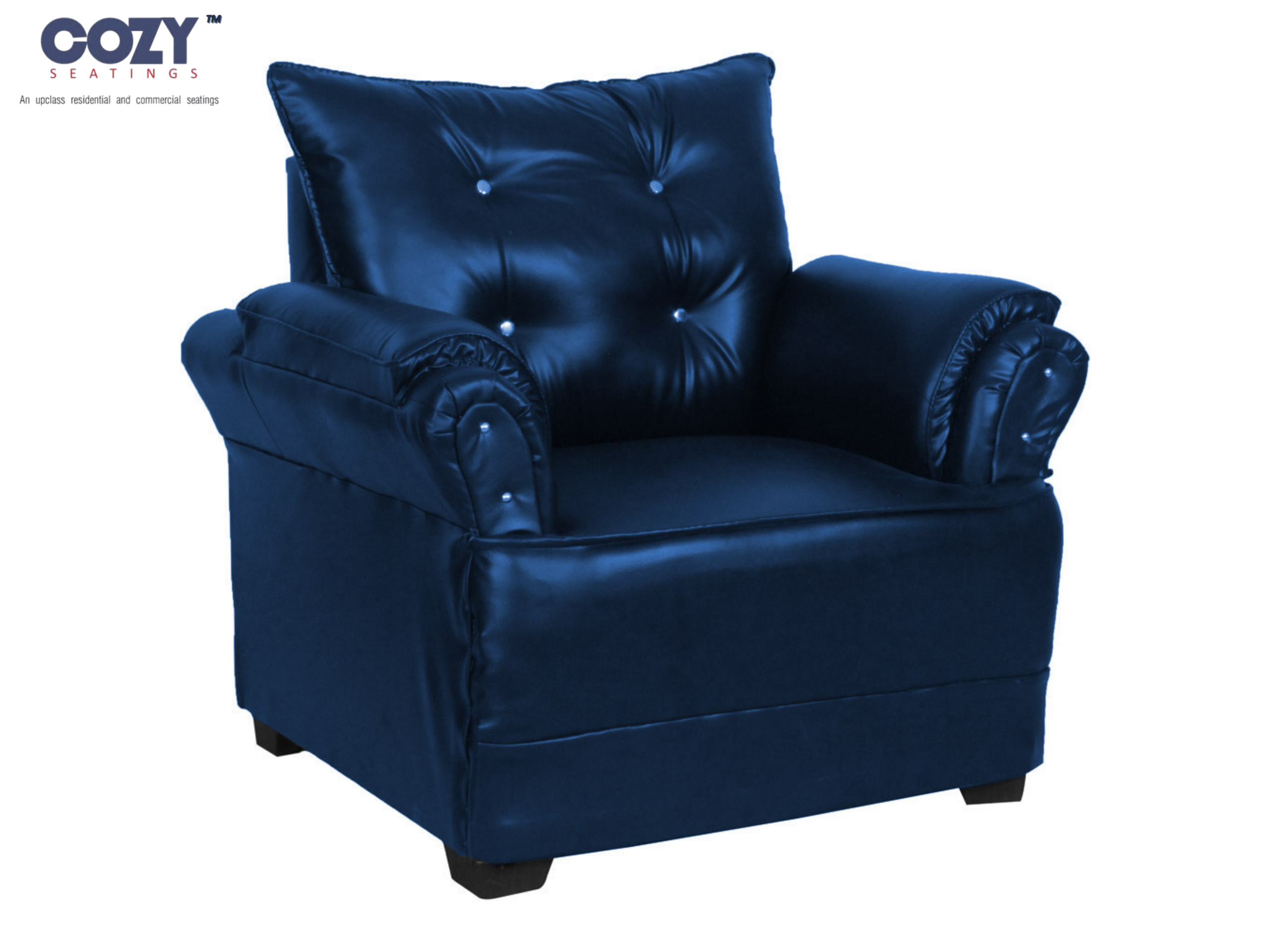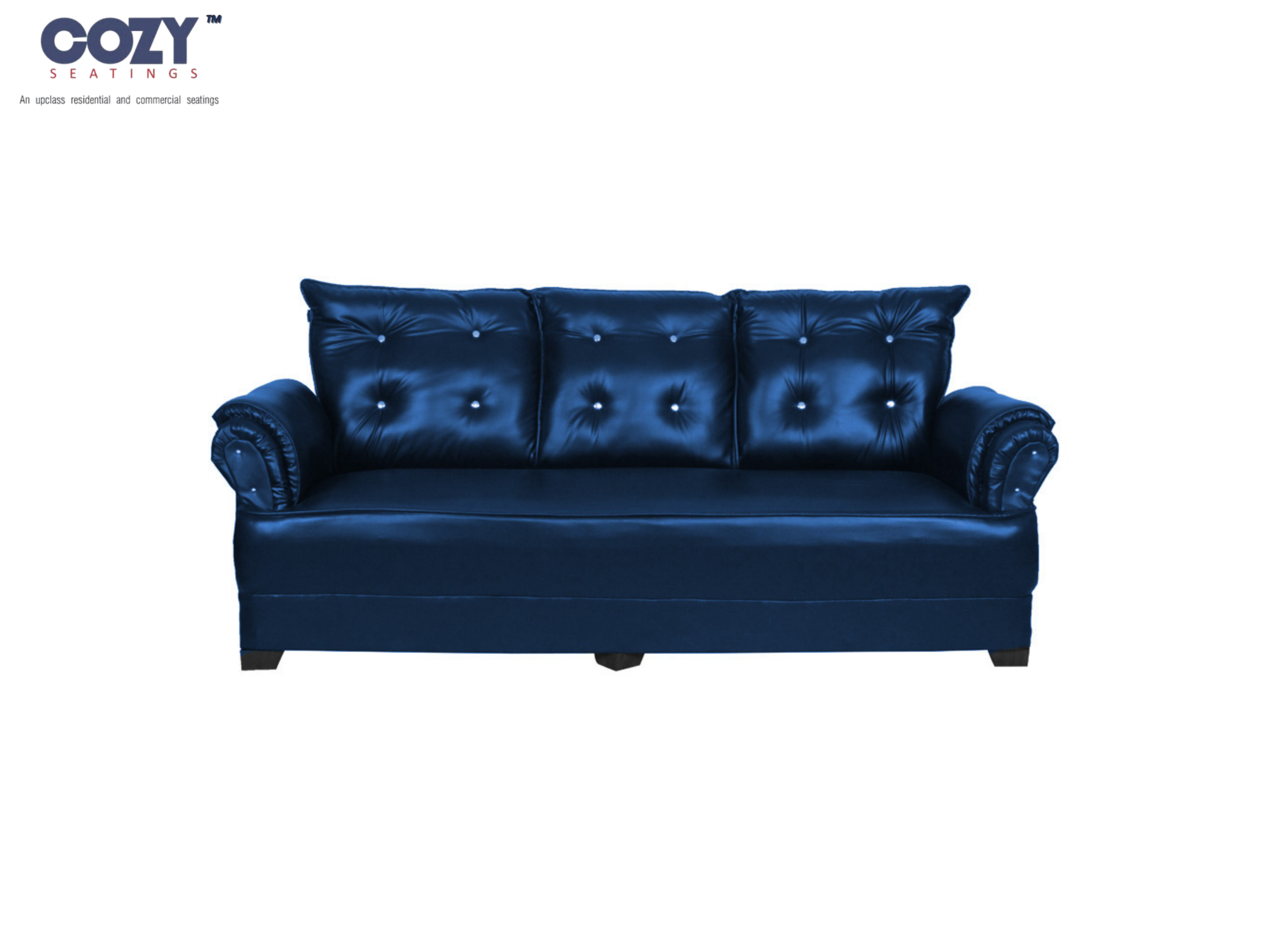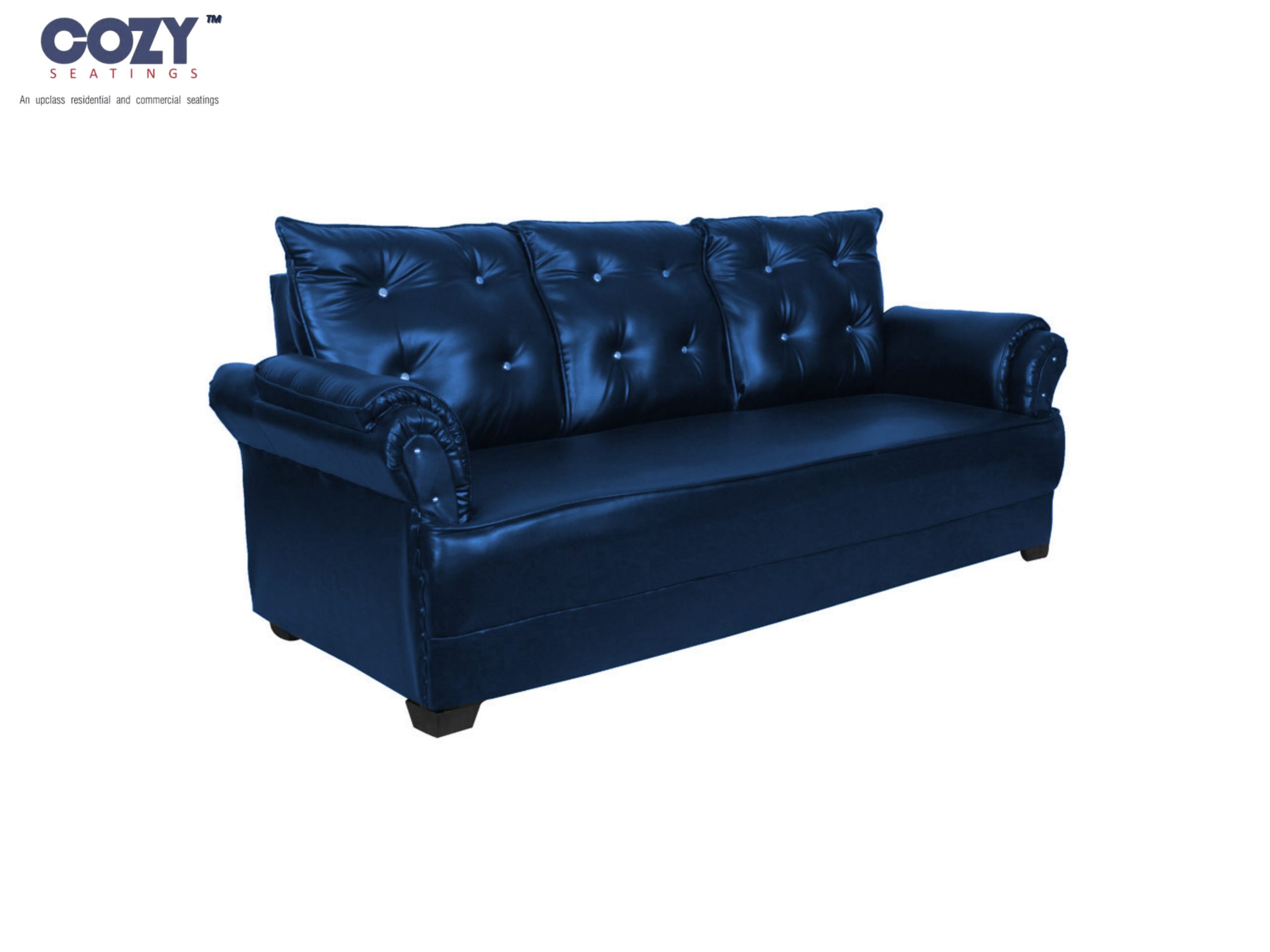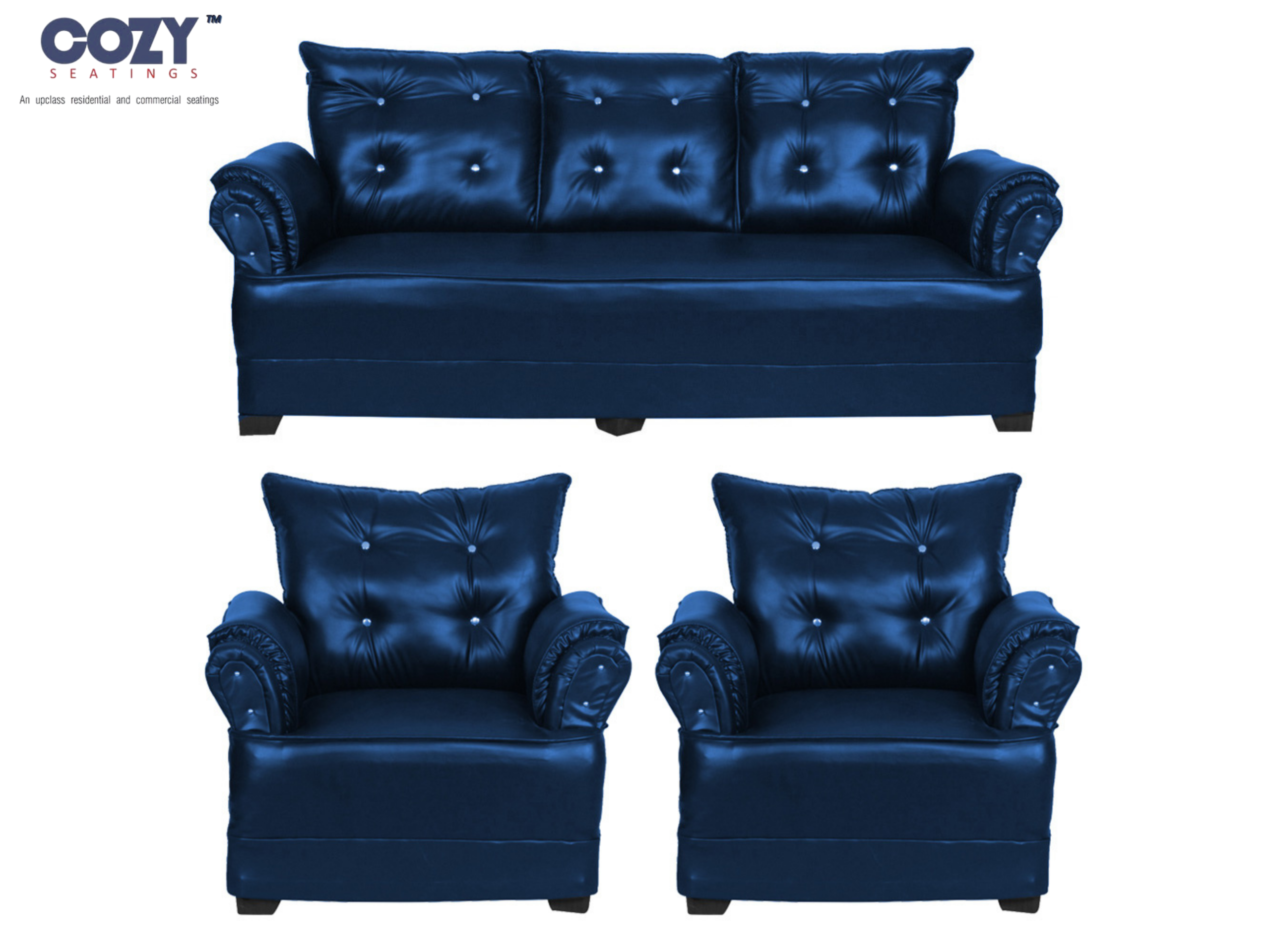 Add a touch of modern luxury to your living space with the Cozy Seatings 3+1+1 Sofa Set in Royal Blue. Upholstered in premium leatherette, this elegant set features a beautifully tufted backrest with crystal-style button detailing, giving it a rich and stylish appearance.