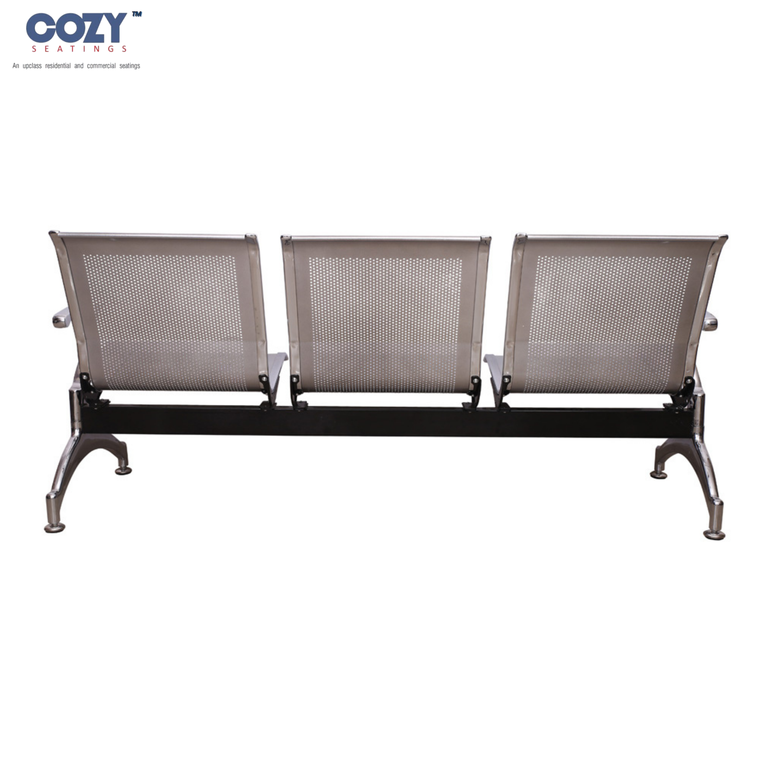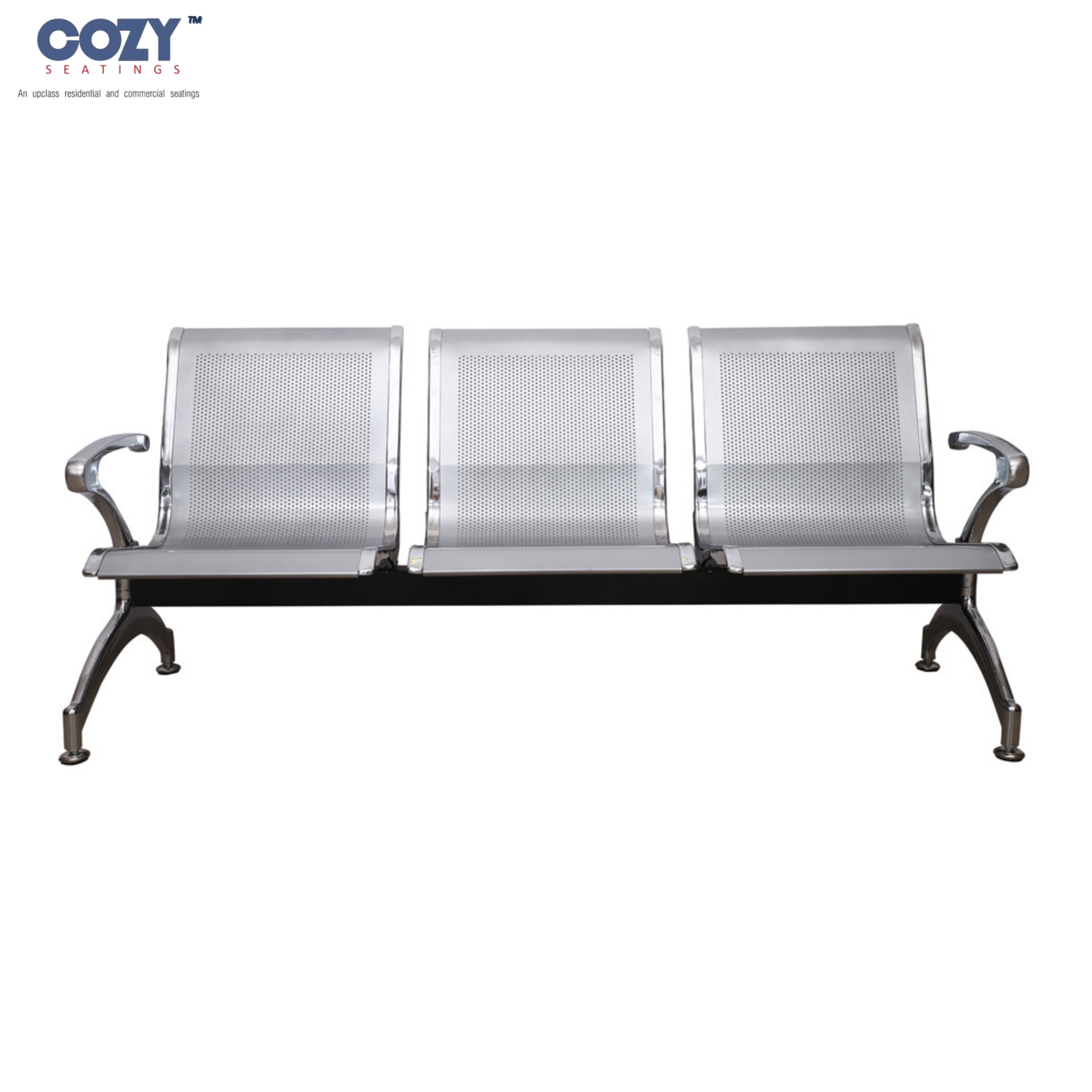 Upgrade your waiting area with this premium 3-seater airport-style chair from Cozy Seatings. Crafted from high-quality stainless steel, this bench features perforated metal seating for enhanced airflow and long-lasting comfort. The sleek armrests and strong metal legs provide excellent support and stability, making it ideal for high-traffic areas. Its modern design and durable construction make it perfect for airports, hospitals, offices, reception areas, and public waiting spaces. Easy to clean and maintain, this seating solution combines functionality, strength, and contemporary style.