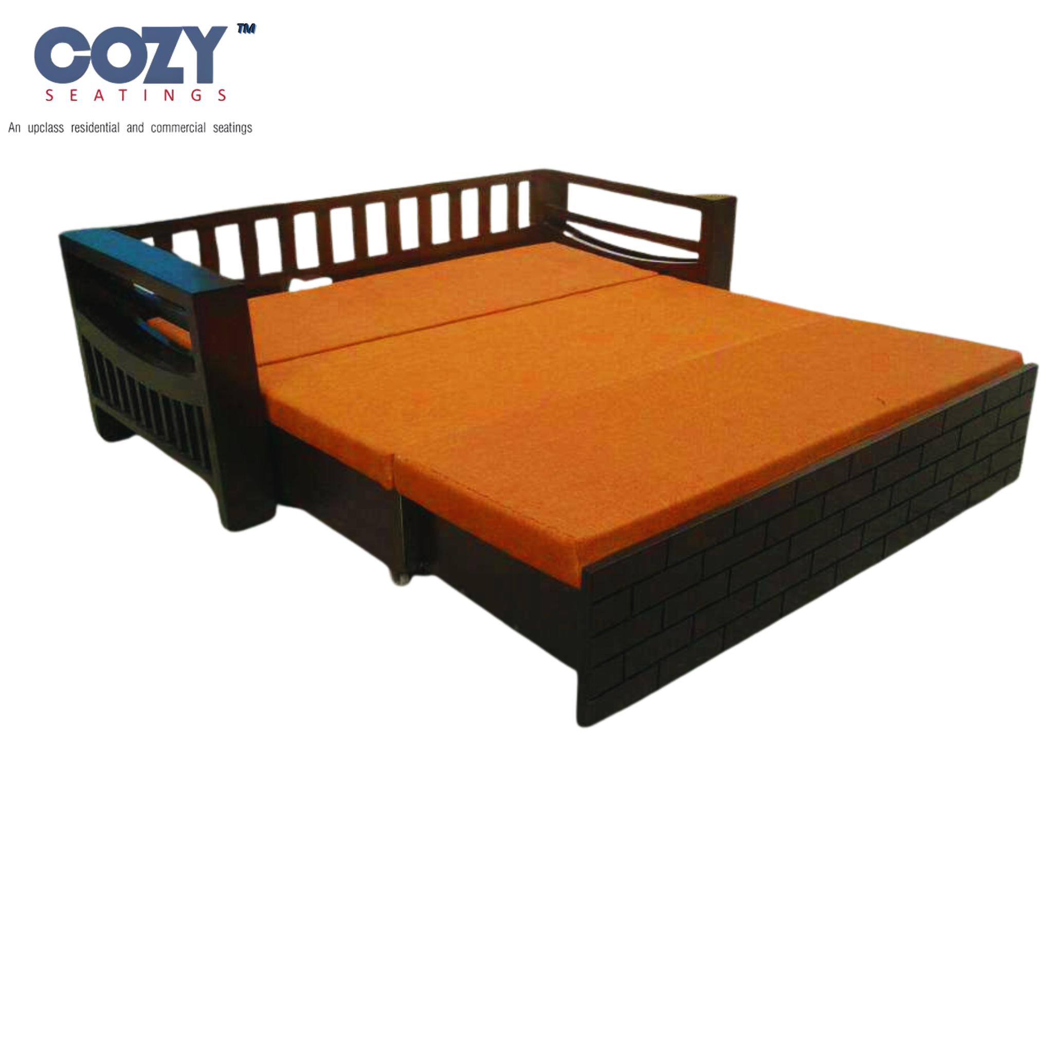 Tressa Teak Wood Convertible sleeper Sofa Cum Bed with Black Wooden Frame 2 Seater -Orange Mattress