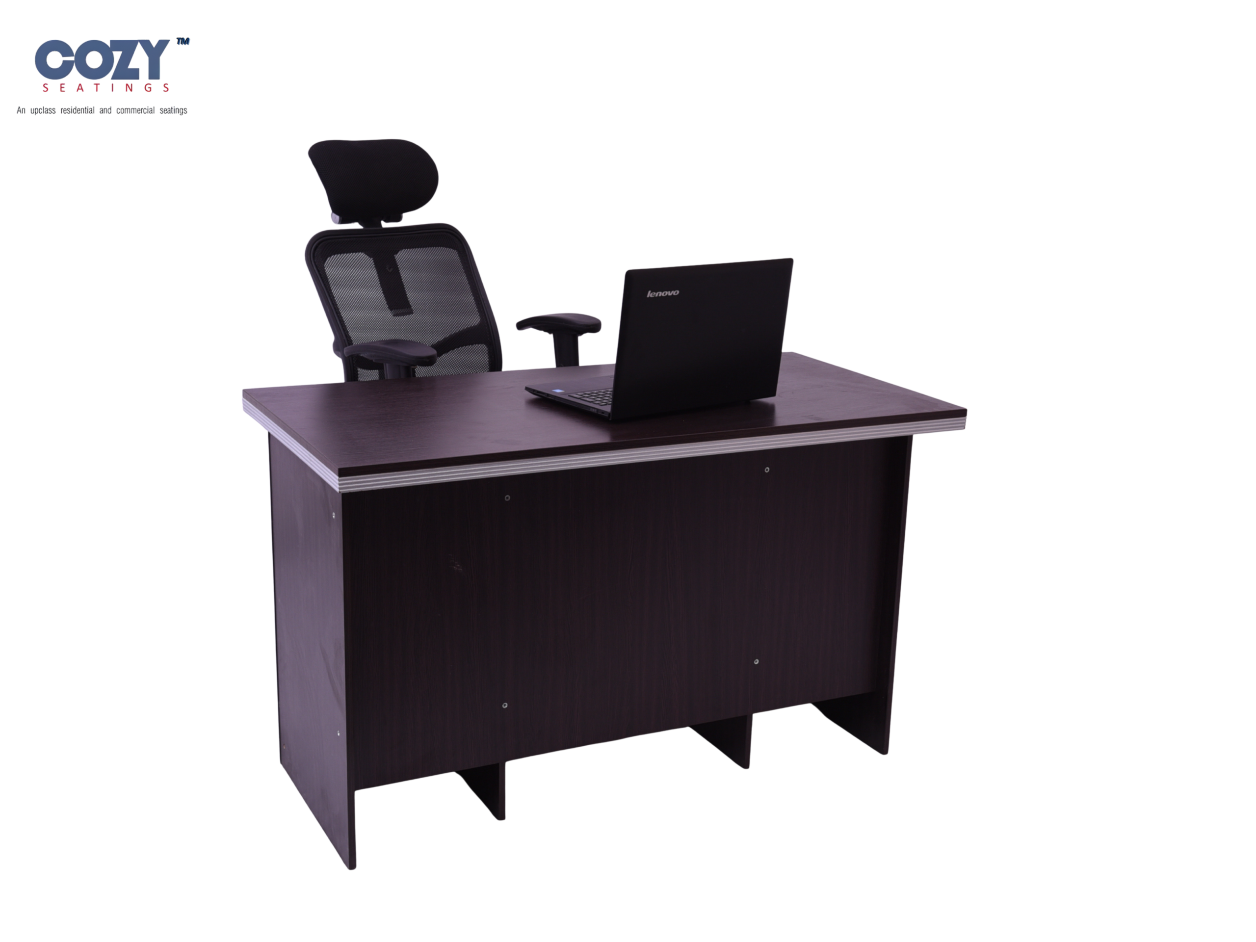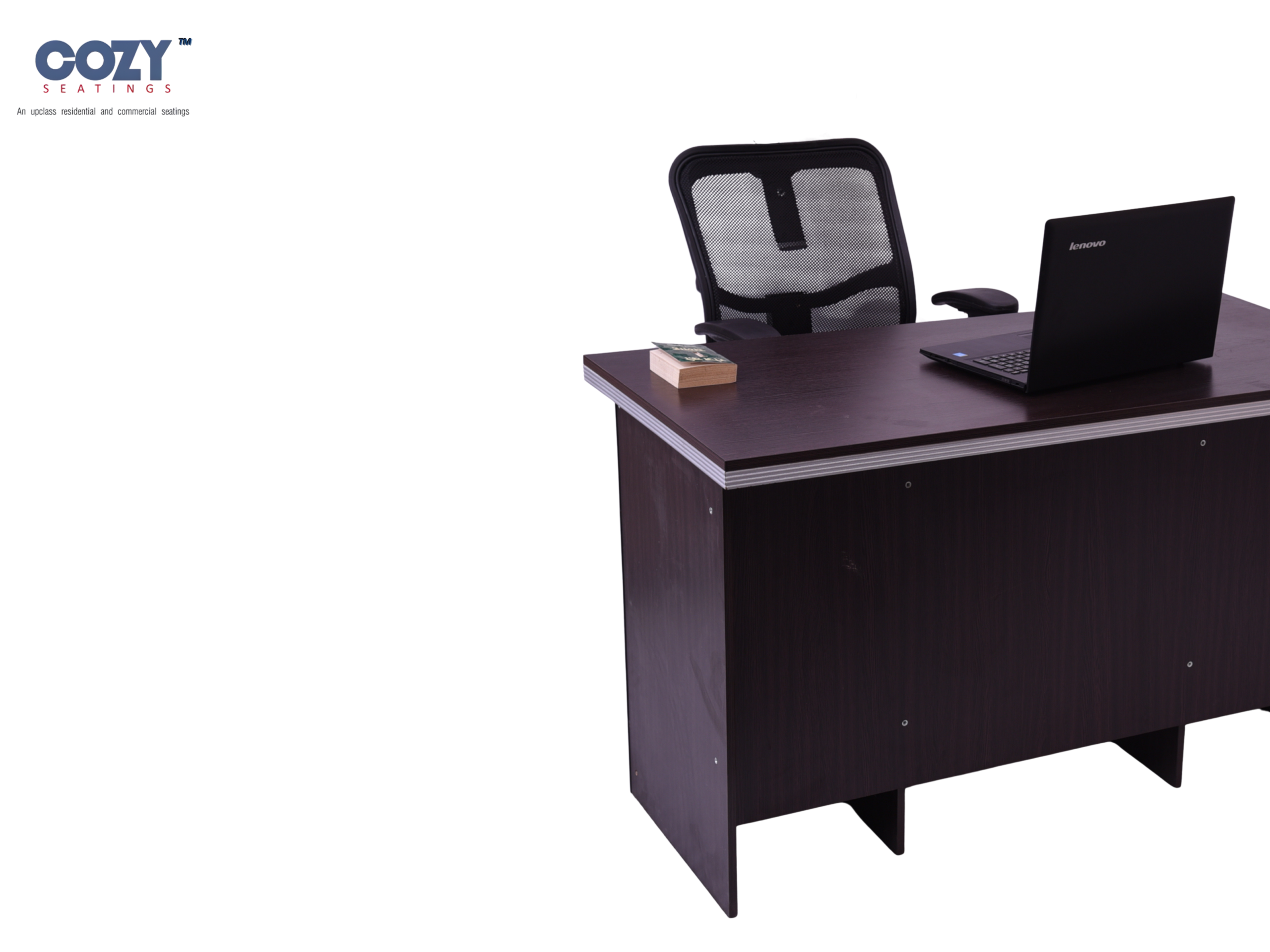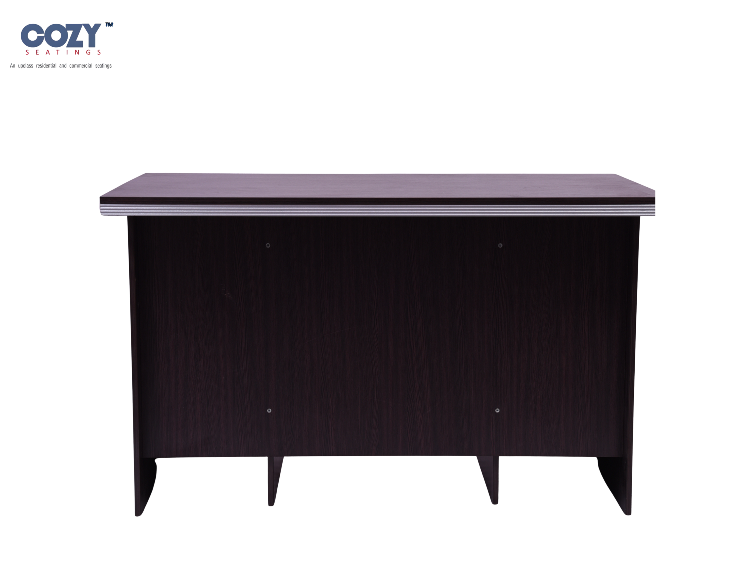 The Cozy Seatingsâ„¢ Modern Managerial Desk is designed to provide a clean, efficient work area without sacrificing style. Featuring a deep wenge wood-grain finish and a unique metallic-look accent along the edge, this desk blends seamlessly into contemporary office environments or modern home studies.